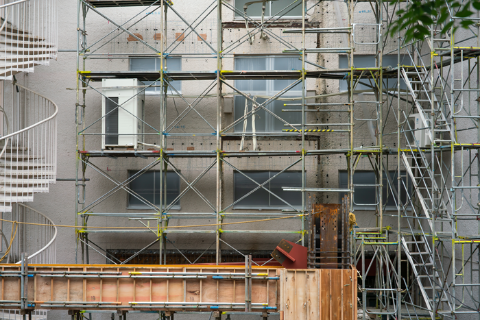 建物の改装やリフォームを行なう際の足場は、新築工事用とはまた別の観点をもたなければなりません。工期はより限定されますので、作業員の方々の効率性や構築・解体にかかるスピードへの要求がより高まります。